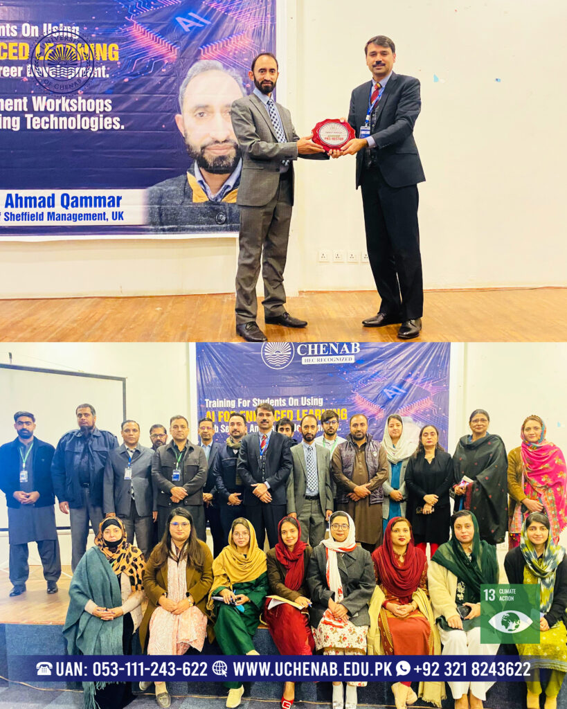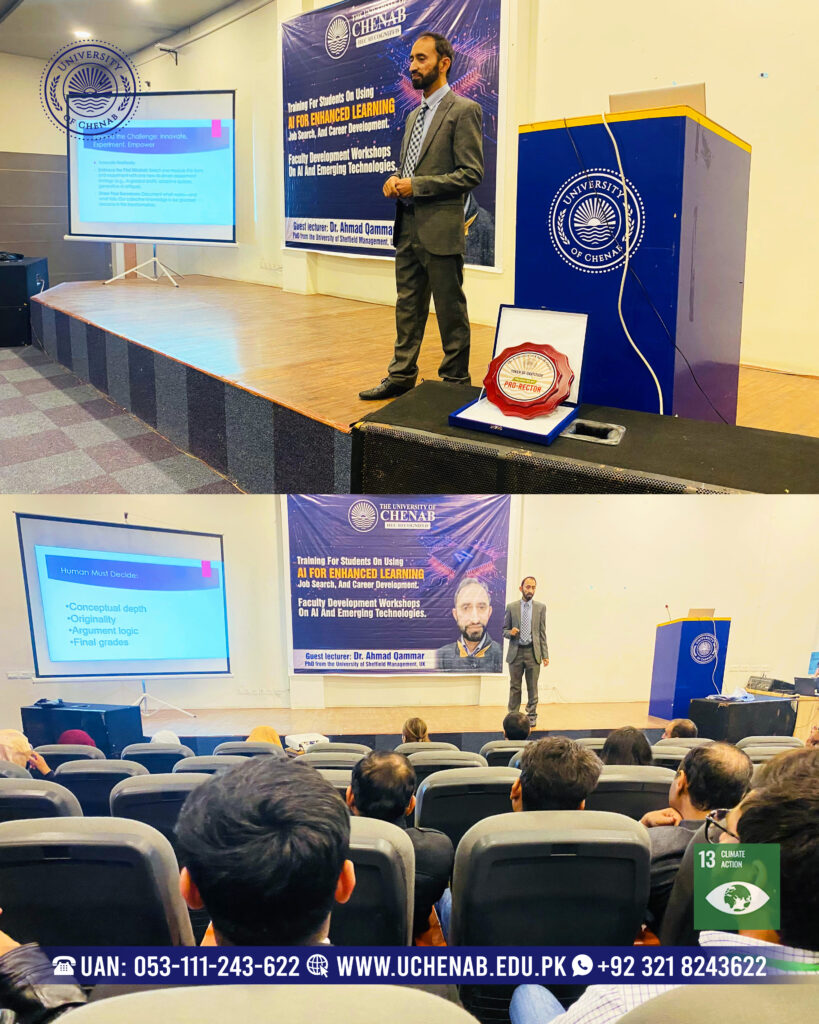 The University of Chenab organized AI for Enhanced Learning training to strengthen academic growth and career readiness. Moreover, the session focused on applying artificial intelligence to learning, job search, and professional planning. Additionally, the initiative reflected UChenab’s commitment to building a future-ready academic community. The training session began with an engaging introduction outlining practical AI applications. Initially, participants explored digital tools supporting personalized learning and skill development. Later, discussions highlighted AI-driven approaches for resume building and job searching. Consequently, students gained clarity about aligning technology with career goals.