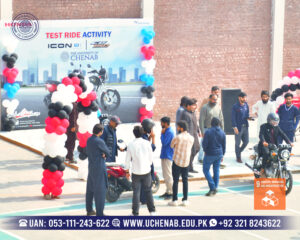 The University of Chenab advanced Empowering Innovation by hosting Atlas Honda’s E-Sport Bike Testing Session, creating meaningful engagement around sustainable mobility and green technology. This initiative