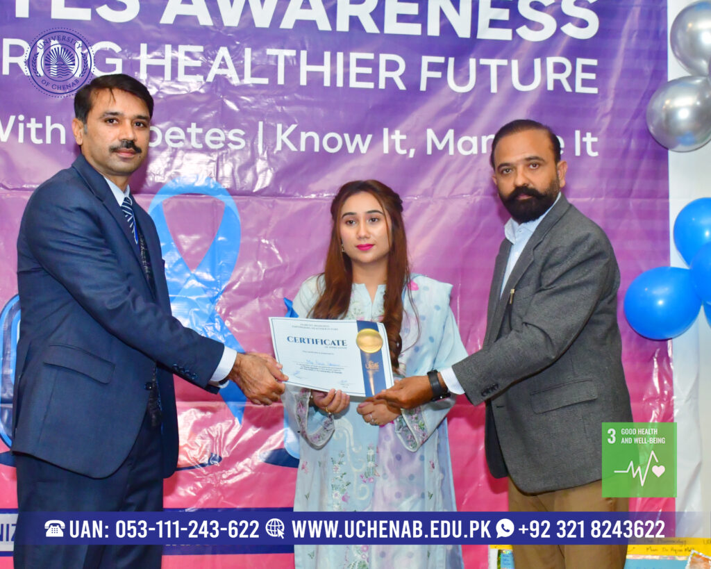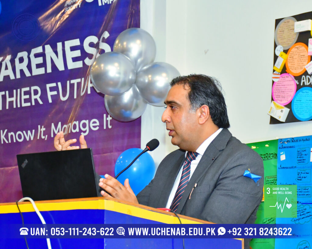 Students also explored practical ways to recognize early symptoms and manage risk factors. Expert facilitators explained how lifestyle choices influence disease progression and why timely interventions improve overall health. Real-life examples helped attendees visualize how consistent routines support glucose control and reduce complications. A special highlight of the event was the arrival of Pro-Rector Prof. Dr. Ghulam Hussain. His presence motivated students to stay committed to health-focused initiatives and adopt habits that strengthen personal and community well-being. His encouraging remarks inspired participants to take ownership of their health journeys and promote awareness within their circles.