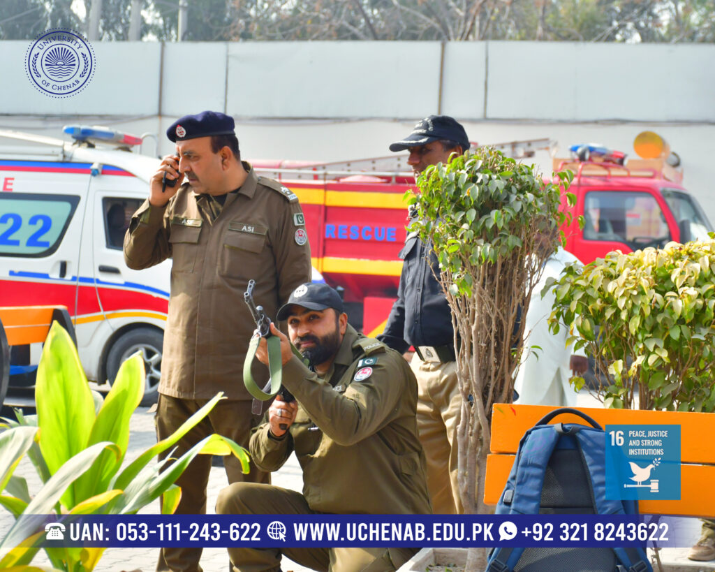 The University of Chenab conducted the exercise under official civil defence directives. Furthermore, authorities ensured compliance with provincial safety and preparedness requirements. Consequently, departments aligned actions with standardized emergency response protocols. Each phase improved situational awareness and reinforced campus-wide coordination. Guidance from the Deputy Commissioner and Controller Civil Defence Gujrat ensured effective implementation. Notably, leadership support strengthened discipline and operational clarity during activities. Subsequently, teams practiced response techniques addressing diverse emergency scenarios. Every movement focused on accuracy, speed, and controlled execution.