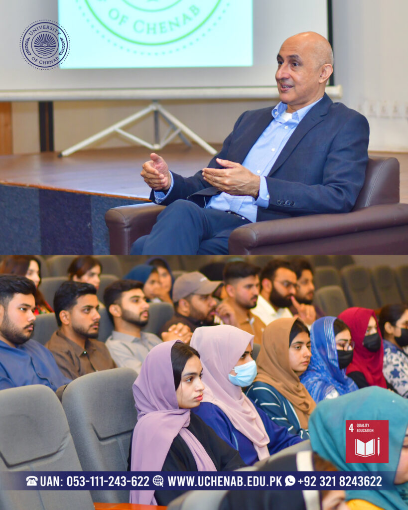 The University of Chenab organized an impactful Interactive Session connecting final year students with the worthy Deputy Chairman, Board of Governors, Mr. Naveed Akbar. The engagement created a meaningful platform where students gained leadership exposure and professional direction. This purposeful dialogue aimed to prepare graduates for industry challenges while strengthening institutional mentorship values. The session commenced with an open conversation encouraging students to share academic experiences, career concerns, and professional aspirations. Participants actively discussed future pathways, higher education prospects, and workplace expectations. Moreover, the Deputy Chairman listened attentively and responded with practical guidance rooted in real-world leadership experience.