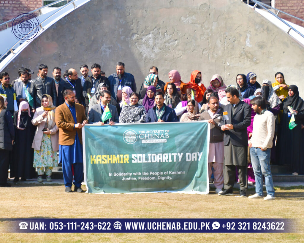 The University of Chenab organized a purposeful Kashmir Solidarity Seminar, reaffirming institutional commitment to justice, peace, and human rights advocacy. This significant engagement aimed to strengthen awareness about the Kashmir cause while promoting informed dialogue among students and faculty. Moreover, the initiative reflected the University’s dedication to nurturing socially responsible and conscious citizens. The seminar commenced with a dignified gathering attended by respected academic and administrative representatives. Notably, the worthy Pro-Rector, Prof. Dr. Ghulam Hussain, graced the occasion, reinforcing the University’s principled stance on humanitarian solidarity. His presence added institutional strength and inspired participants to reflect on national responsibility and collective voice.