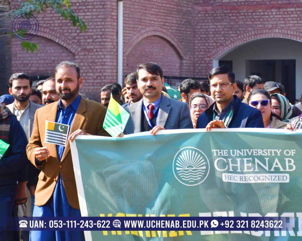Additionally, banners, placards, and reflective messages amplified awareness and strengthened collective expression. Participants demonstrated discipline, respect, and thoughtful engagement throughout the activity. Such involvement highlighted the power of academic institutions in shaping civic consciousness. Through initiatives like this, The University of Chenab continues to champion humanitarian values and social responsibility. The Kashmir Solidarity Seminar successfully cultivated awareness, unity, and purposeful reflection across the campus community, reinforcing commitment toward peace, justice, and informed civic engagement.