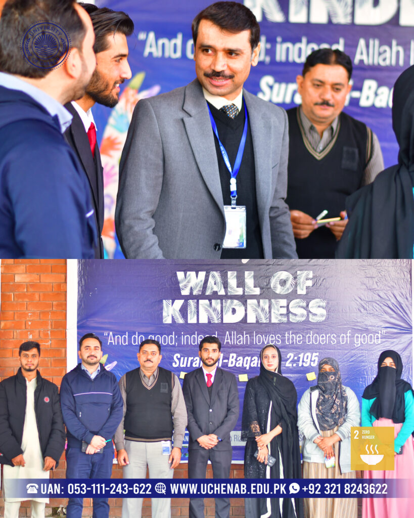 Kindness Corner 2025 brought compassion, creativity, and community spirit together at UChenab. The Adeeb Rizvi Serving Humanity Society organized the event with a strong humanitarian vision. Students enthusiastically participated and reflected values of empathy and collective responsibility. Moreover, the initiative encouraged positive action through meaningful, student-led engagement across campus. The opening ceremony welcomed Pro-Rector Prof. Dr. Ghulam Hussain with great respect and appreciation. Esteemed faculty members and administrative staff joined the meaningful inauguration. Their presence motivated students to contribute actively toward social causes. Additionally, leadership encouragement strengthened confidence and inspired greater participation.