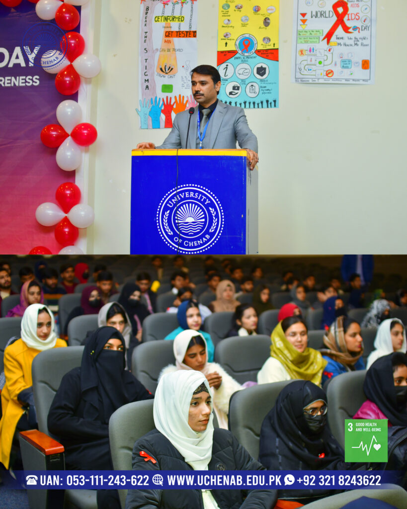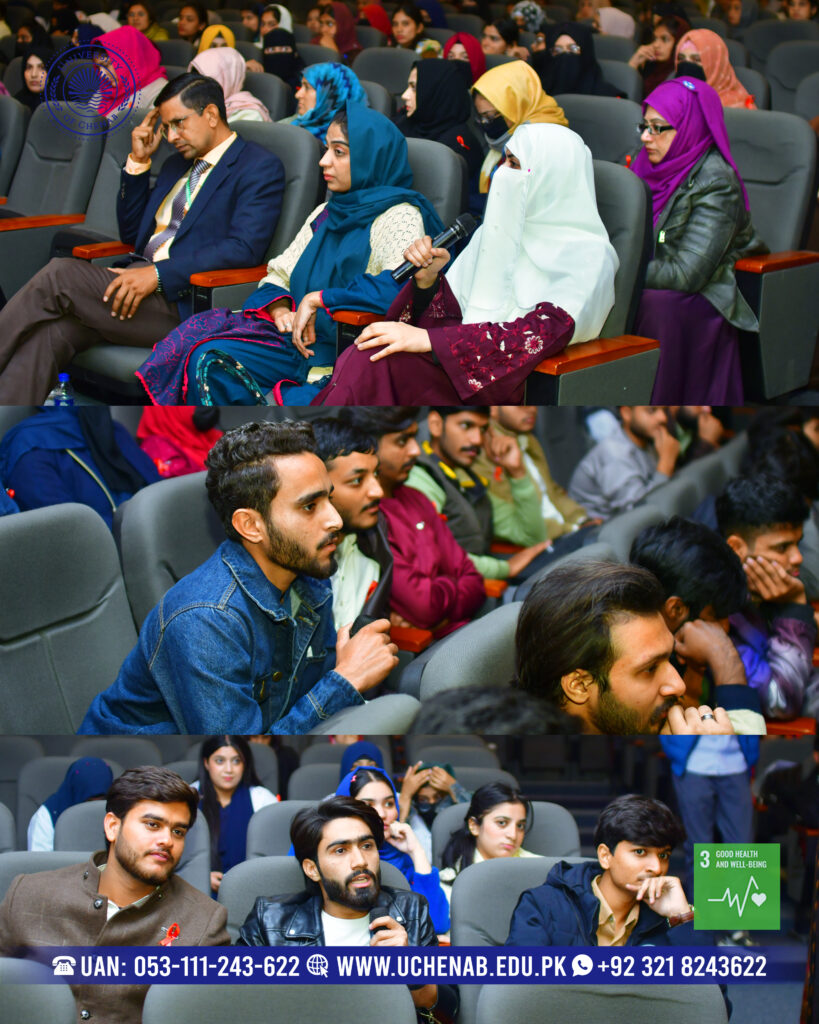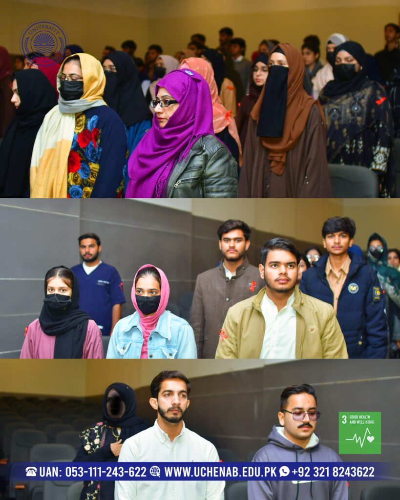 Pro-Rector Prof. Dr. Ghulam Hussain enhanced the gathering with motivating words for students. Moreover, his presence emphasized UChenab’s commitment to health-focused education. Syed Aitzaz also contributed valuable insights as the honourable Chief Guest. Additionally, Syed Basit Hussain enriched the session with practical guidance about stigma reduction. His explanations supported clarity and encouraged students to approach health issues with empathy. Faculty members encouraged participation and strengthened student confidence throughout the session. Likewise, staff teams offered structured support that improved the overall learning experience. Additionally, the academic environment motivated students to share concerns and seek clarity. Every moment reinforced awareness and promoted responsible behaviour within the campus community.